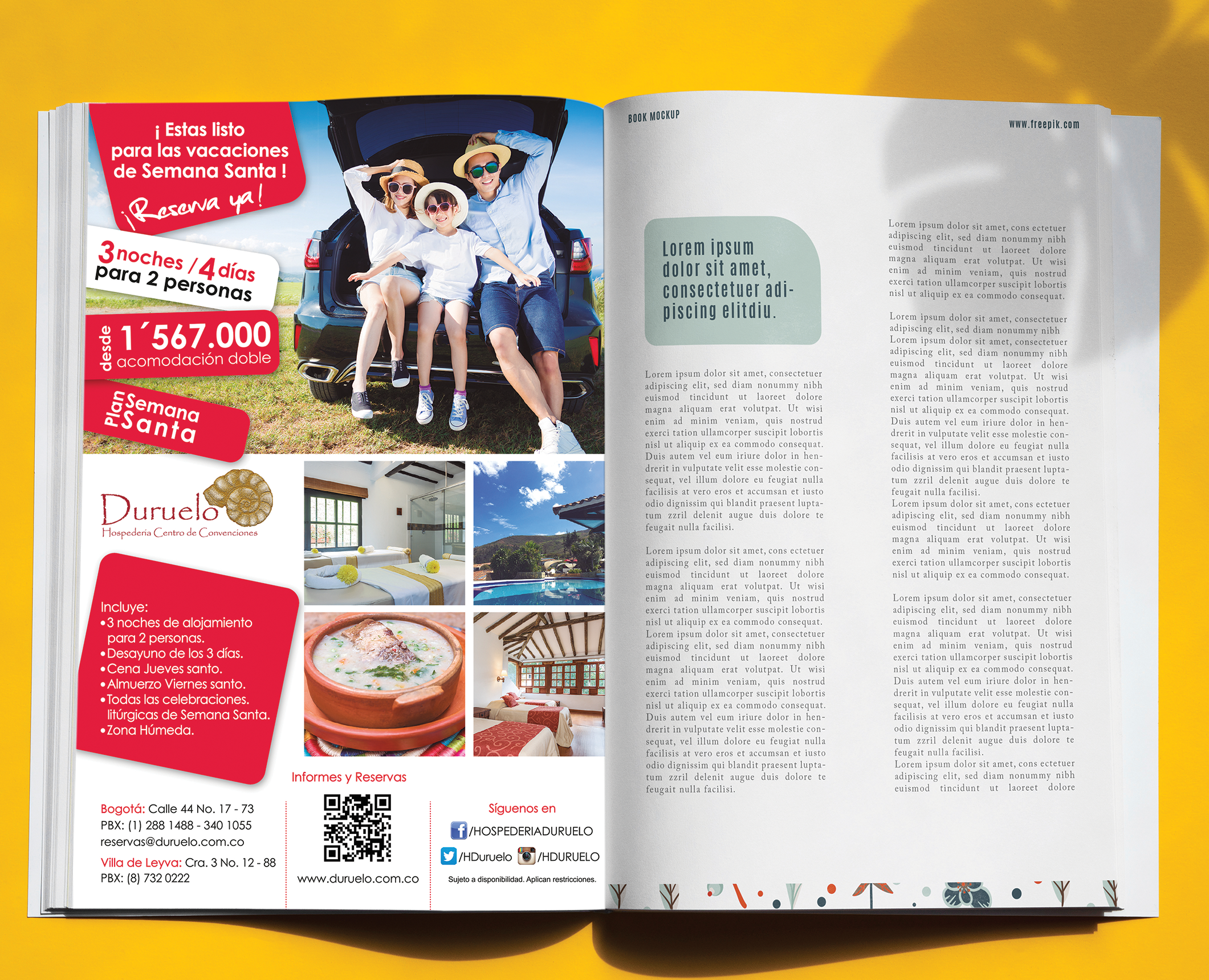 Projet imprimé pour Hospederia Duruelo (entreprise hôtelière) en Colombie.