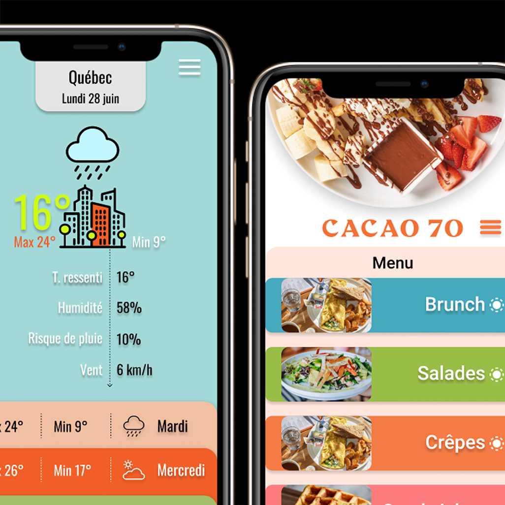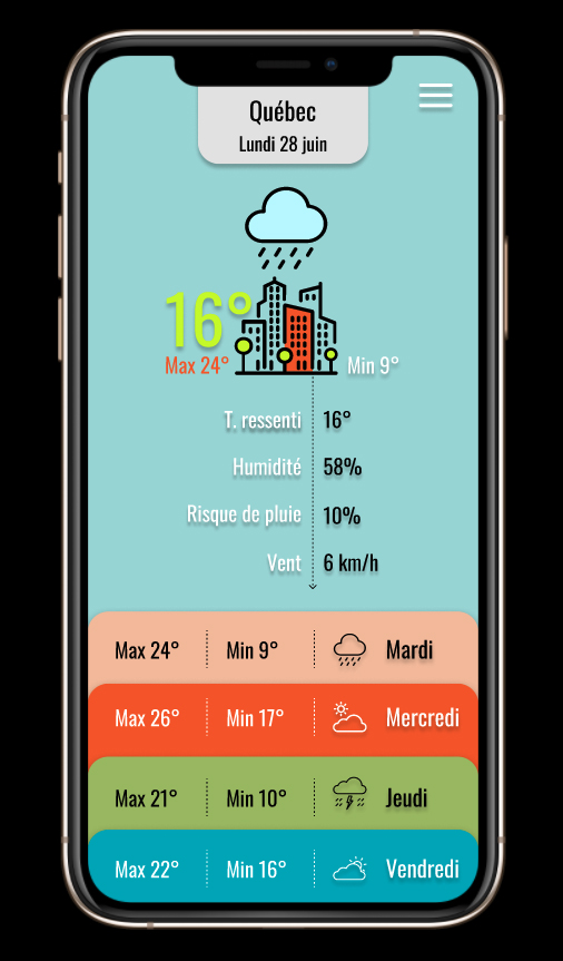 Thèmes des challenge : Interface de la météo, chatbot, applications de repas rapide, menu mobile, leaderboard et Billet d’avion.